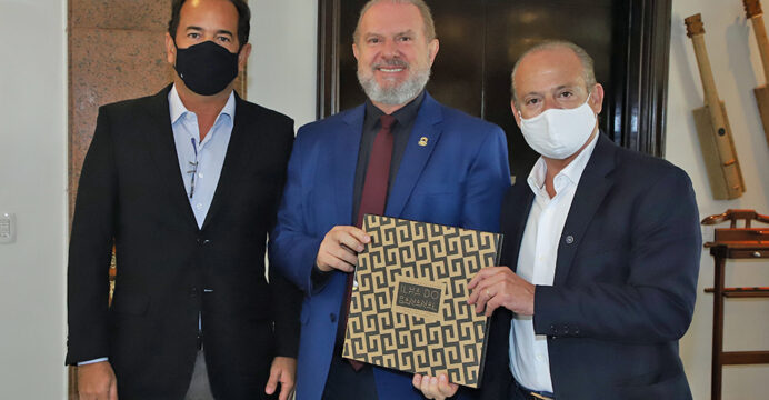 O governador do Estado do Tocantins, Mauro Carlesse, recebeu na manhã desta quarta-feira, 13, em seu Gabinete no Palácio Araguaia, a visita institucional do secretário de Ambiente de Negócios e Competitividade do Ministério da Economia, Jorge Luiz de Lima, acompanhado do presidente da Federação das Indústrias do Estado do Tocantins (Fieto), Roberto Pires. Na ocasião, foram debatidas formas de apoio para viabilização de projetos estruturantes para o Tocantins.