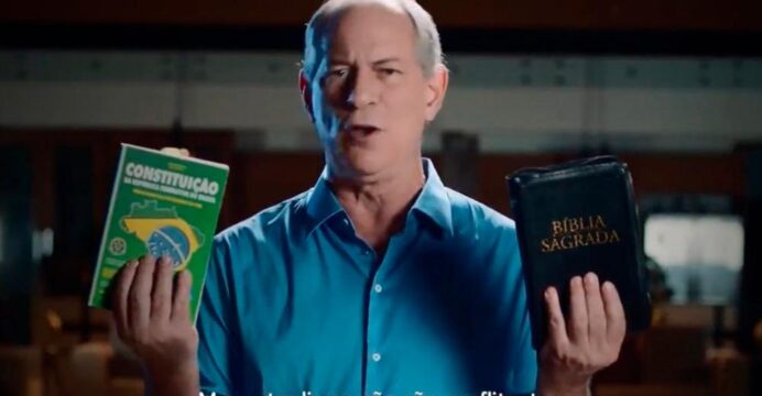 Em uma tentativa de aproximação com o eleitorado evangélico, o ex-ministro Ciro Gomes (PDT) postou na segunda (21), um vídeo em suas redes sociais no qual exalta os valores cristãos enquanto segura a Bíblia em uma mão e a Constituição na outra. “O Brasil é uma República laica, mas a Bíblia e a Constituição não são livros conflitantes”, disse o presidenciável pedetista. A publicação de Ciro foi atacada por pastores aliados do presidente Jair Bolsonaro e deixa explícita a briga pelos votos do segmento religioso entre os pré-candidatos ao Planalto.