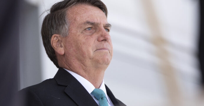 BRA100. BRASÍLIA (BRASIL), 11/07/2022. - El presidente de Brasil, Jair Bolsonaro, recibe hoy en el Palacio do Planalto a la presidenta de Hungría, Katalin Novák (Fuera de cuadro) durante una visita oficial, en Brasilia (Brasil). EFE/ Joédson Alves