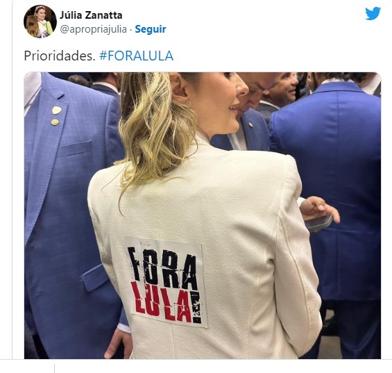 “Prioridades: Fora Lula”, escreveu a deputada Julia Zanatta.