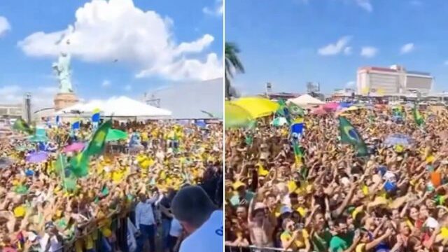 Um vídeo publicado pela deputada federal Bia Kicis (PL-DF) mostra centenas de pessoas aguardando para ouvir Bolsonaro e outras lideranças locais.