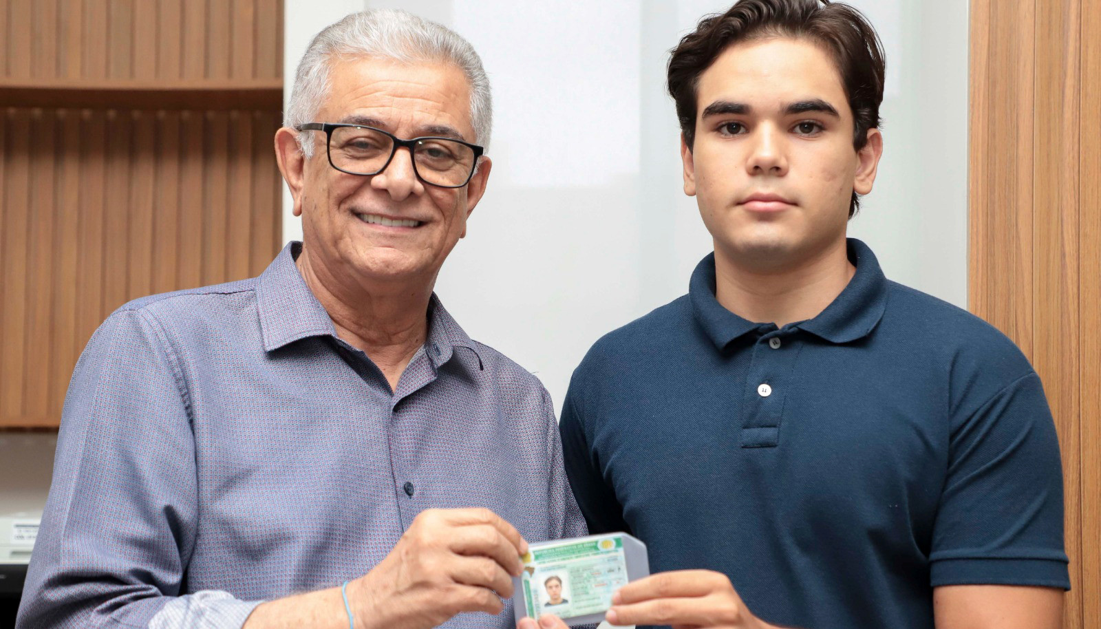 Estudante Filipe, primeira pessoa no estado a obter a CNH no novo formato, recebe a carteira das mãos do presidente Hercy Filho – Félix Carneiro/Governo do Tocantins file_download