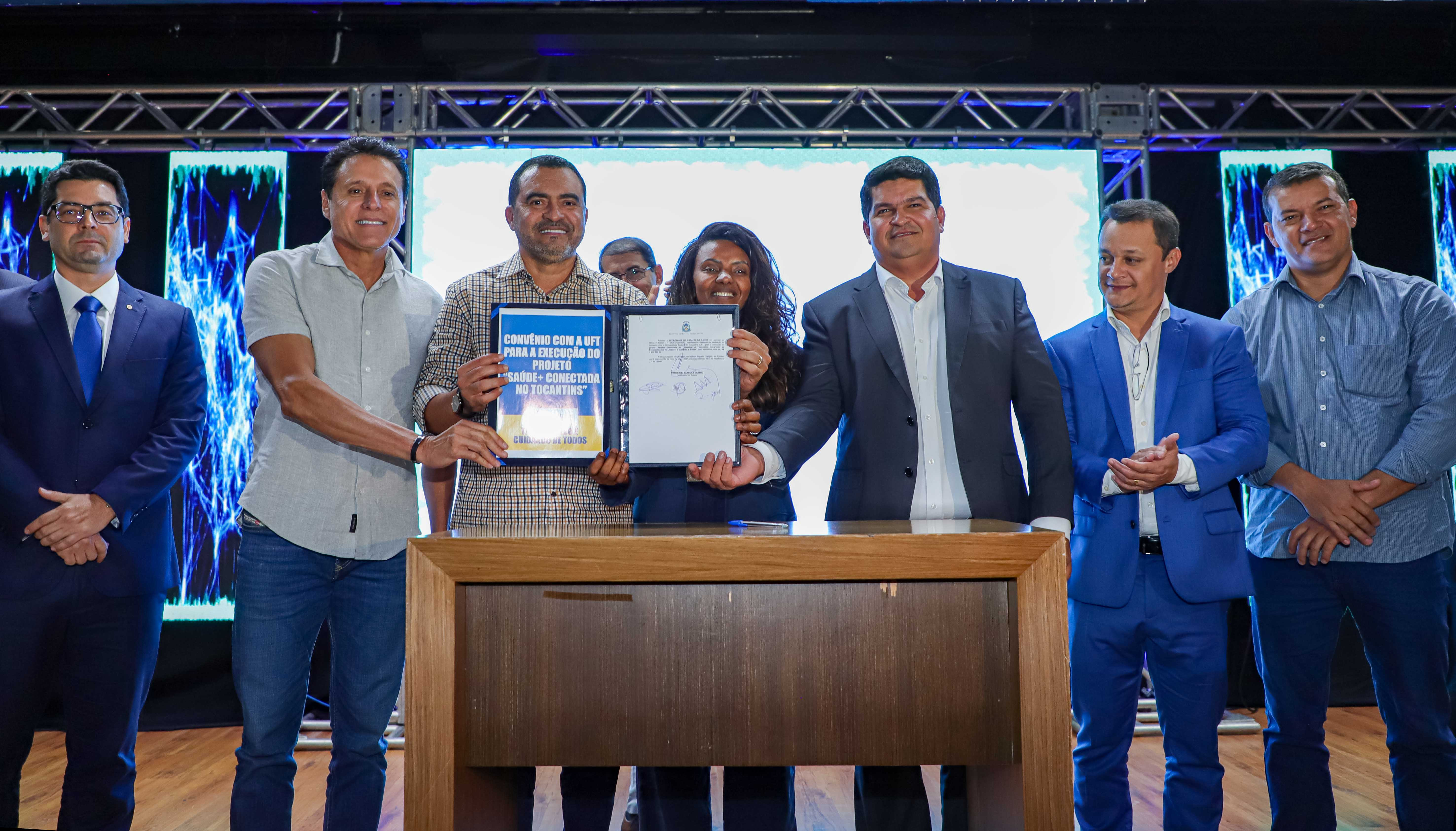 Na ocasião, o chefe do Executivo também assinou convênio com a Universidade Federal do Tocantins (UFT) para a execução do Projeto de Extensão Tecnológica Saúde+ Conectada no Tocantins: a telessaúde integrando as especialidades no acesso e cuidado à saúde, com investimento total de R$ 3.039.590.